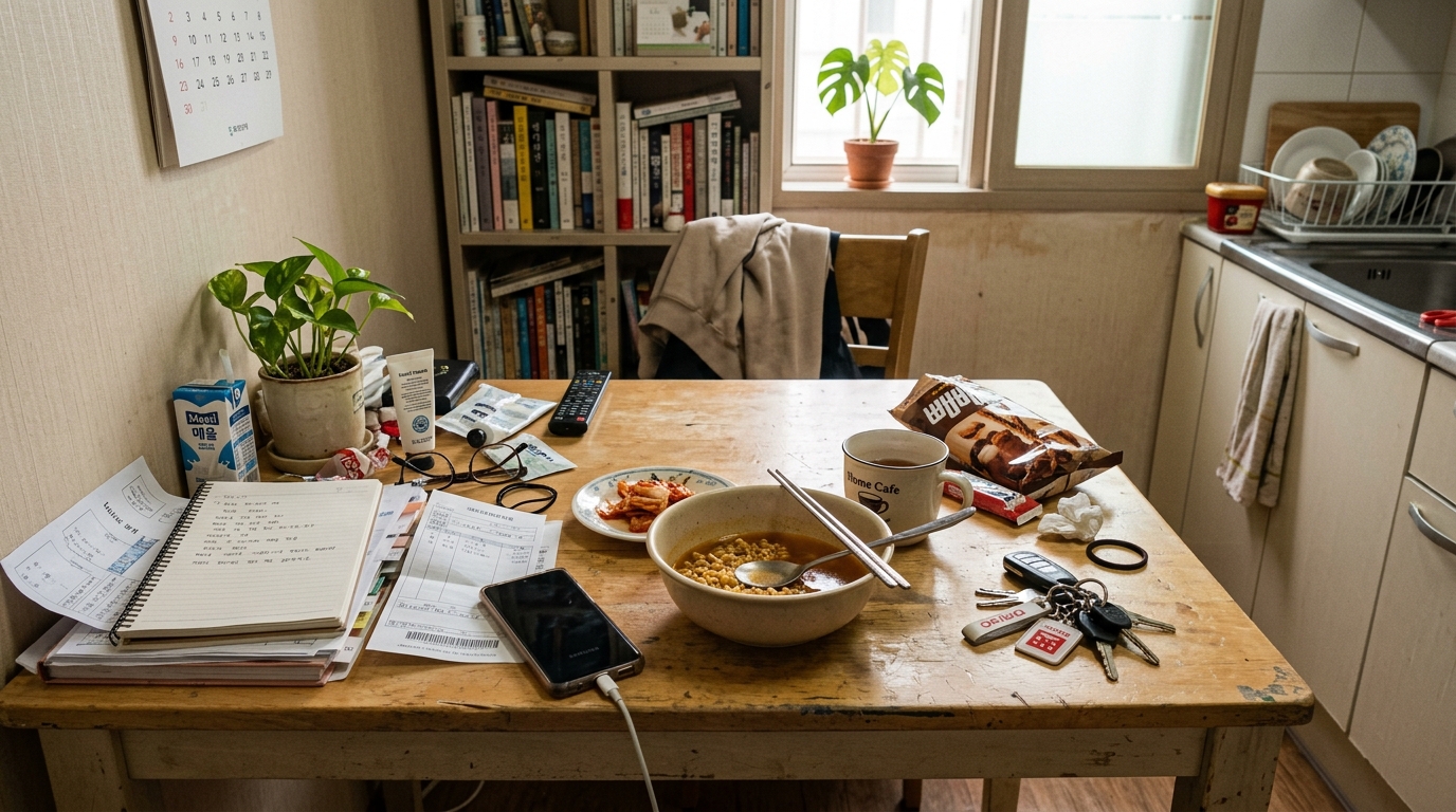 실제로 집을 유심히 살펴보면, 특정 공간만 반복적으로 어질러지는 경우가 많습니다. 예를 들어 현관 앞에 택배 상자가 쌓이거나, 식탁 위에 물건이 계속 쌓이는 식입니다. 이는 청소의 문제가 아니라 물건이 머무르는 구조가 정리되지 않았기 때문입니다.